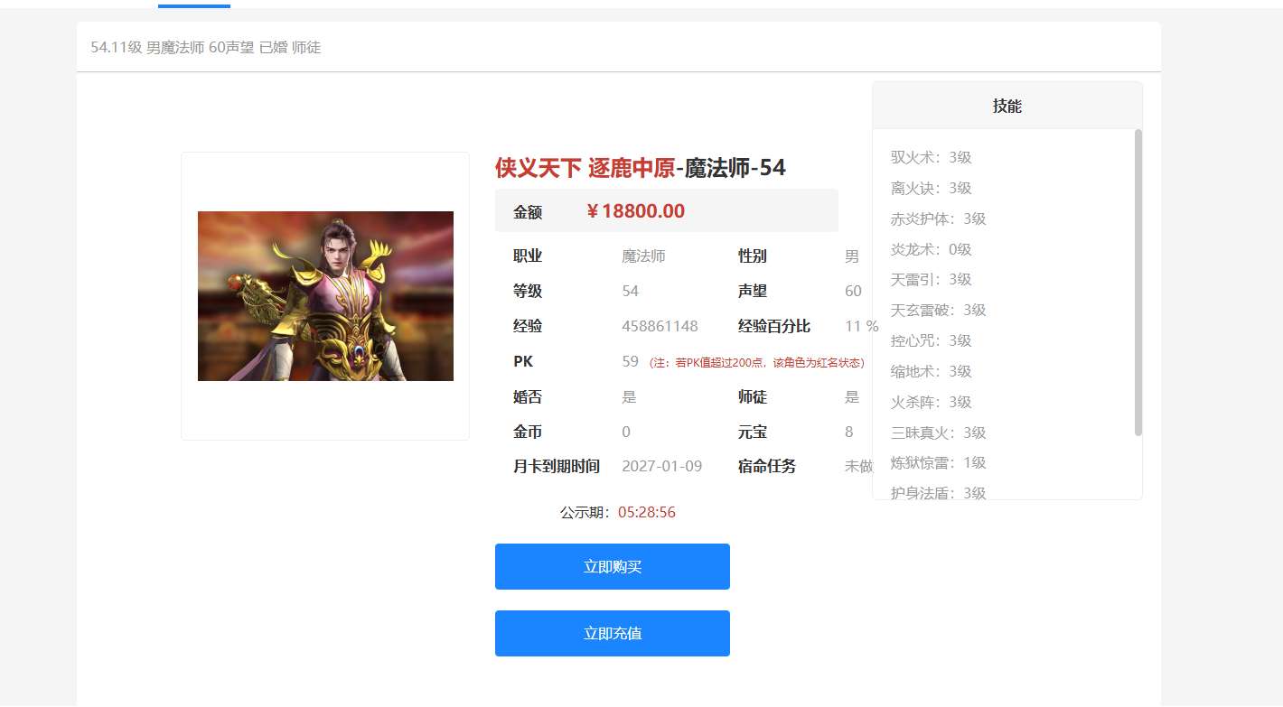 有人猜测他等着新区了,有人说他要卖号退游,还有人说他正在联系代练,准备用重金再打造一条更强的自己。 但谁也没想到,他做了一个最出人意料的决定——退出行会,担保上架,天下第一法就这样上了交易平台,所有的心血化成那18800五位数字。